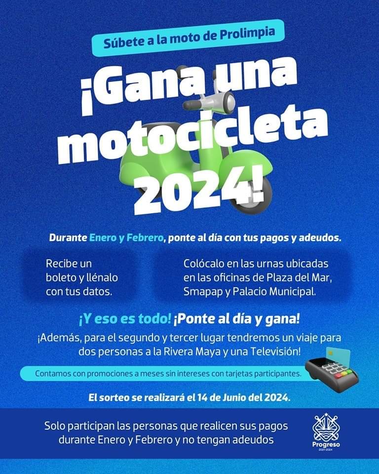 Progreso, Yucatán a 13 de junio de 2024. El alcalde Roger Gómez Ortegón invita a la ciudadanía a presenciar los sorteos programados mañana viernes 14 de junio y el lunes 17, entre usuarios que realizaron sus pagos oportunos del servicio de recolección de basura por parte de PROLIMPIA y del impuesto predial, respectivamente.