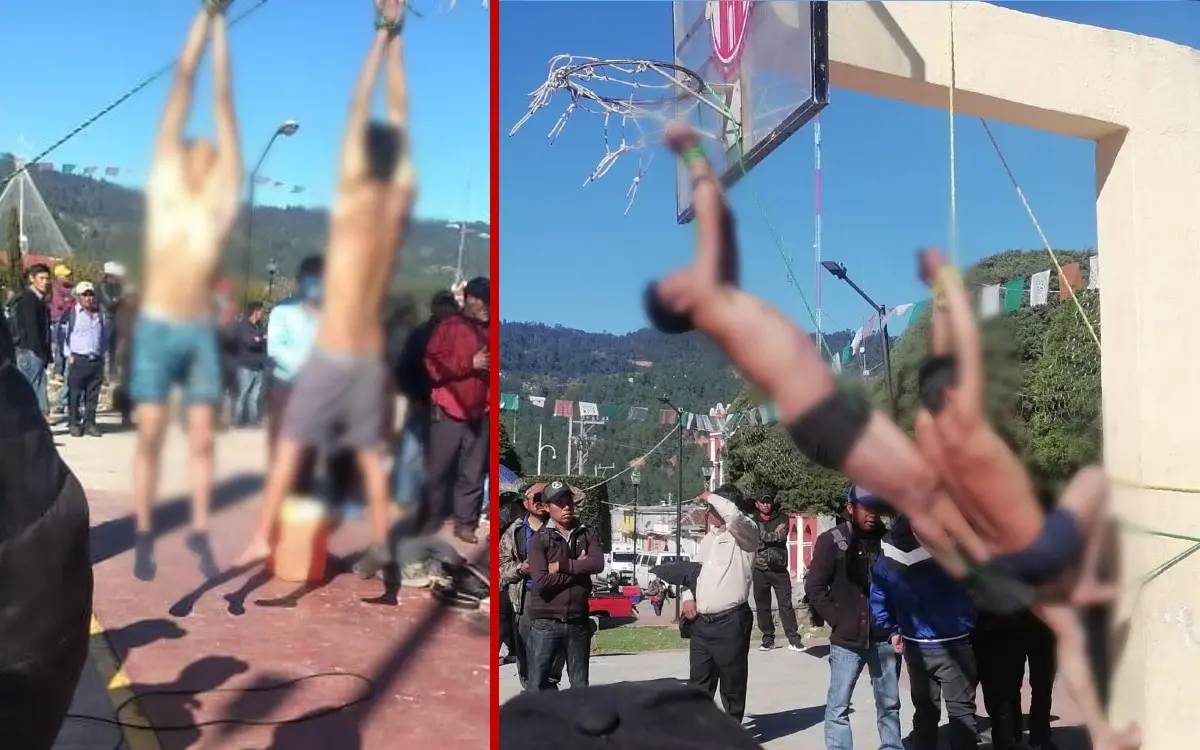 Pobladores retuvieron a cuatro presuntos delincuentes, los semidesnudaron y colgaron de las manos en el parque central del municipio de Huixtán, Chiapas. Indígenas tzeltales colgaron y...